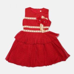 Girl's Red Multi Layer Floral Frock