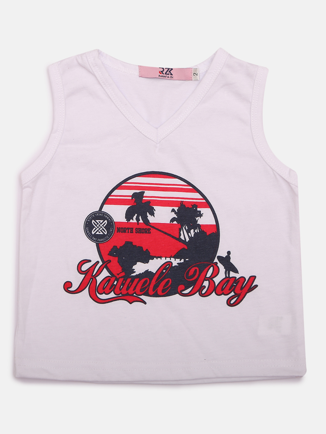 Cotton Fabric 3 piece Set Printed Pattern Half Sleeve Shirt with Sleeveless T-Shirt & Short Set