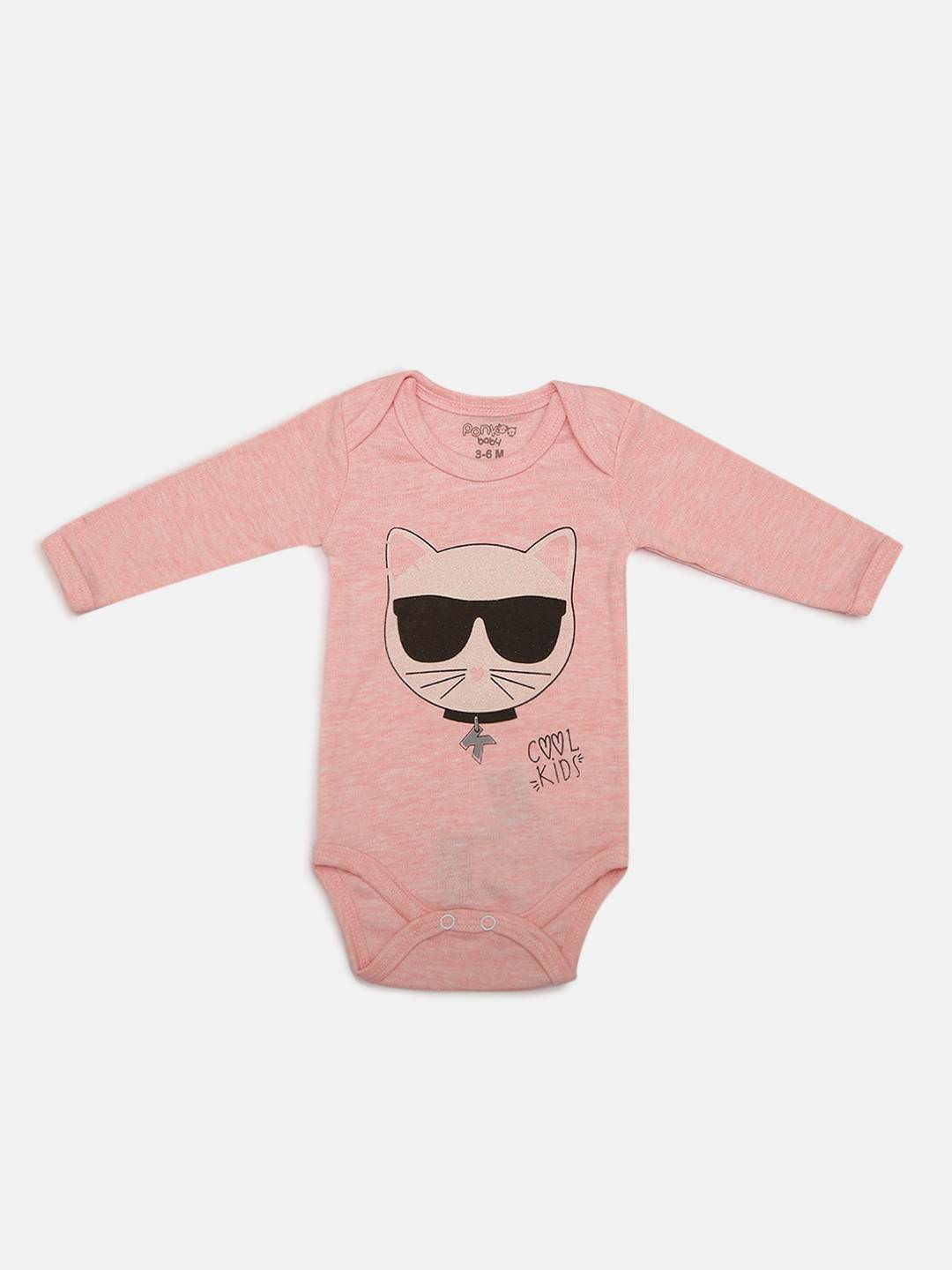 Printed pattern Girls Pink colour Bodysuit made of pure cotton with full sleeves